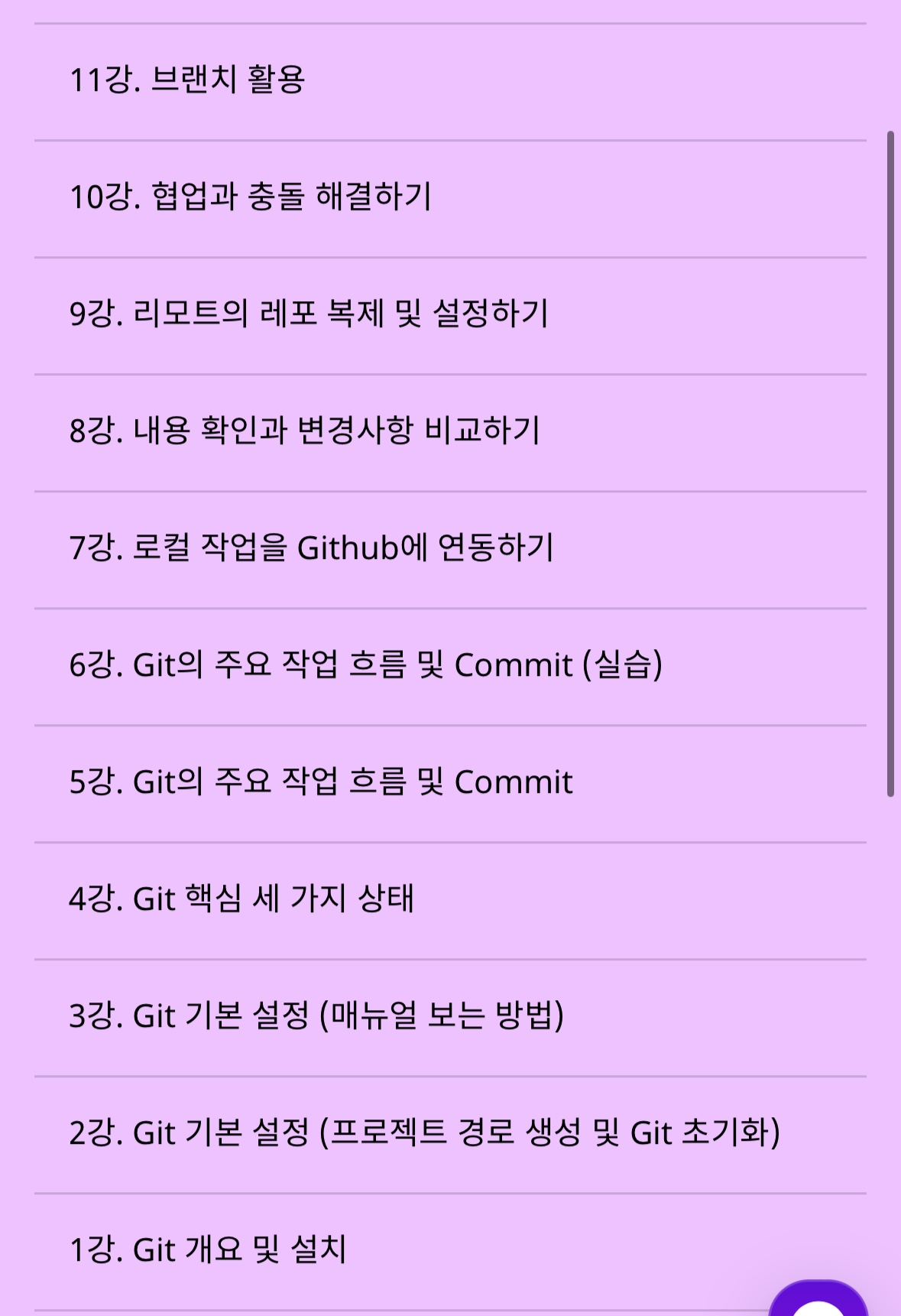 정말 열심히 해야겠다 싶어서 교육 들으러 가는 2시간 동안 플레이데이터에서 제공해준 git & github 강의를 들으면서 왔다. 우리 강사님이 알려주시는 환경과 비슷하기도 하고, 겹치는 부분도 많아서 복습이 참 많이 됐다! 2주 차때에 아쉬운 점에 넣었던 내용을 이렇게 해결한 것 같다. 굿굿. 플레이데이터 강의 강의 설명이 아주 찰떡콩떡이니 필요하신 분들은 꼭,,, 활용하세요 !!