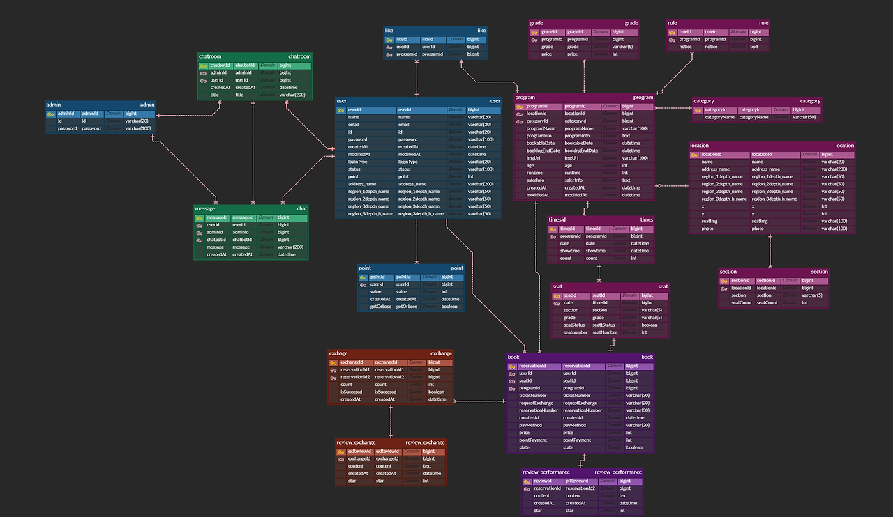 우리 팀은 회의를 하루에 24시간은 한 거 같다. 의견을 제시하면 그 의견에 대해 또 반박을 하고... 또 반박을 하고 답이 안 나오면 강사님을 불렀다. 그렇게 만들어진 우리팀의 ERD를,,, 보여드릴게요!