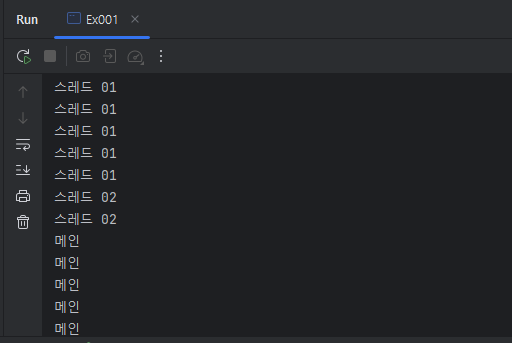 이렇게 Thread1과 Thread2를 만들어두고, 이제 만들어준 Ex001로 간다.