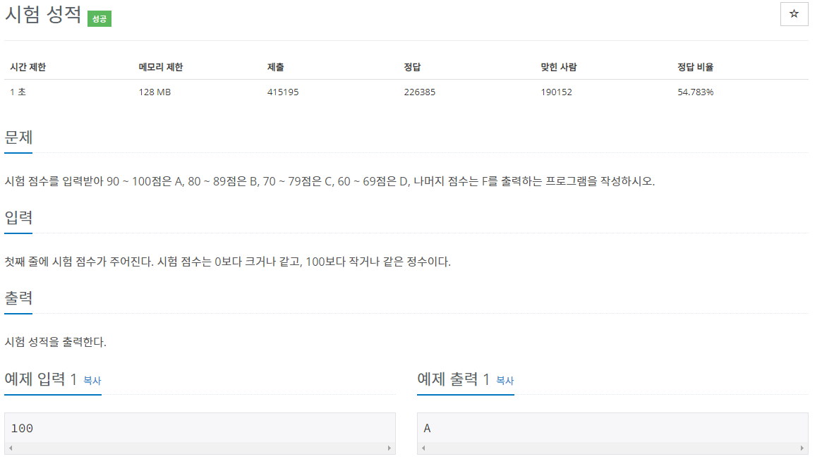 [백준][조건문] 9498번 : 시험 성적 - JAVA 본문