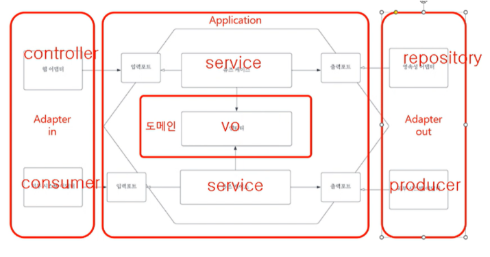 웹어댑터 → 입력포트 → 유즈케이스 → 출력포트 → 영속성 어댑터 의 순서라고 생각하면 된다.