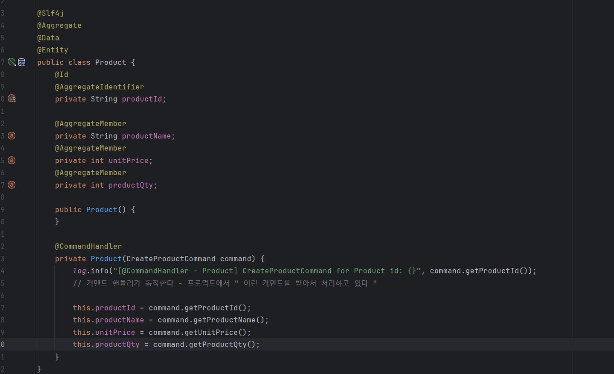 [@커멘드 핸들러가 동작한다 - 프로덕트에서 ] 이런 커멘드를 받아서 프로덕트를 처리하고 있다. 가져올 id