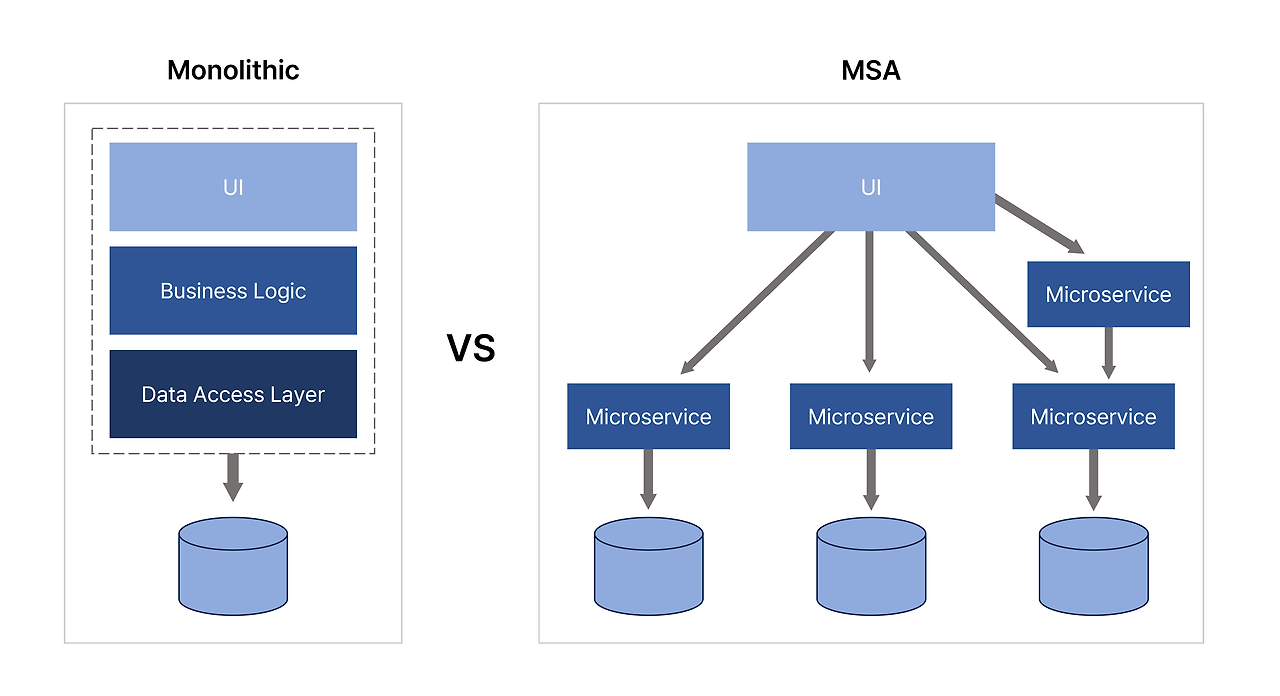 MSA를 설명하기 전, 그와 비교가 되는 예시인 모놀리식 아키텍처에 대해서 말씀 드리겠습니다.