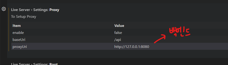 웹 브라우저에서 접속 했을 때, 에러가 뜨지 않도록 허용 해 주기 위해서 지금 보여지는 3개의 주소를 같게 설정 해 줘야한다.