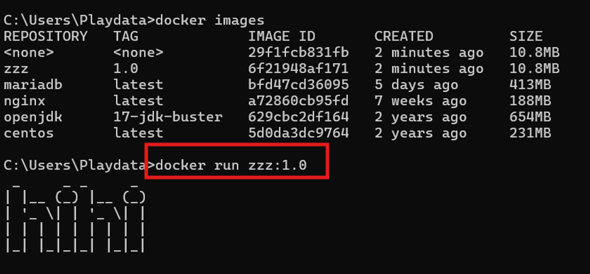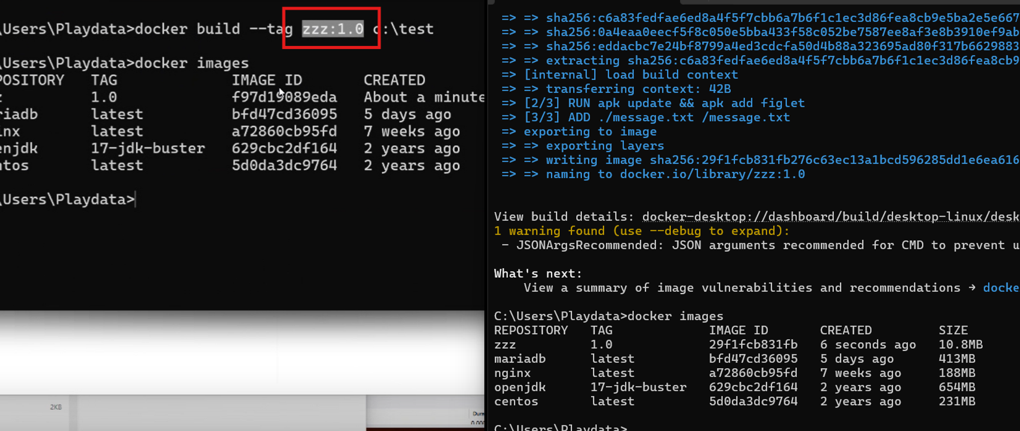 docker build --tag zzz:1.0[이름:버전] c:\test (경로)