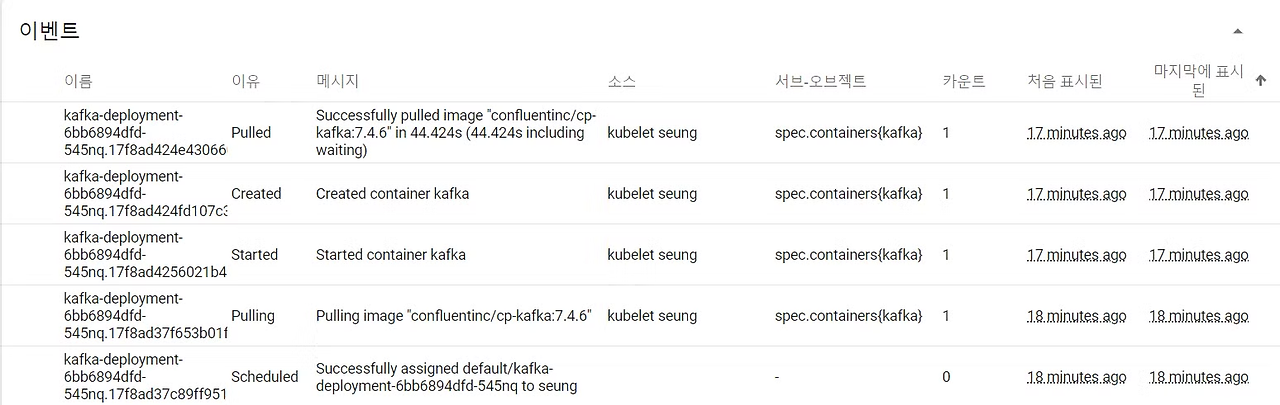잘 실행됐는지 알기 위해 Pod 이벤트를 확인 해 보았습니다.
